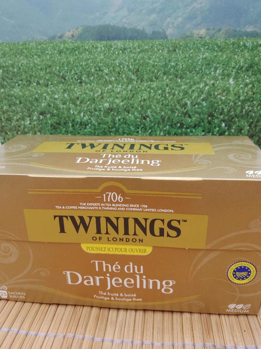 Thé noir en boîte de 25 sachets. Thé léger à déguster tout au long de la journée. Provient des hauts plateaux de l'Himalaya. Infuser 3 minutes dans une eau à 80 degrés.